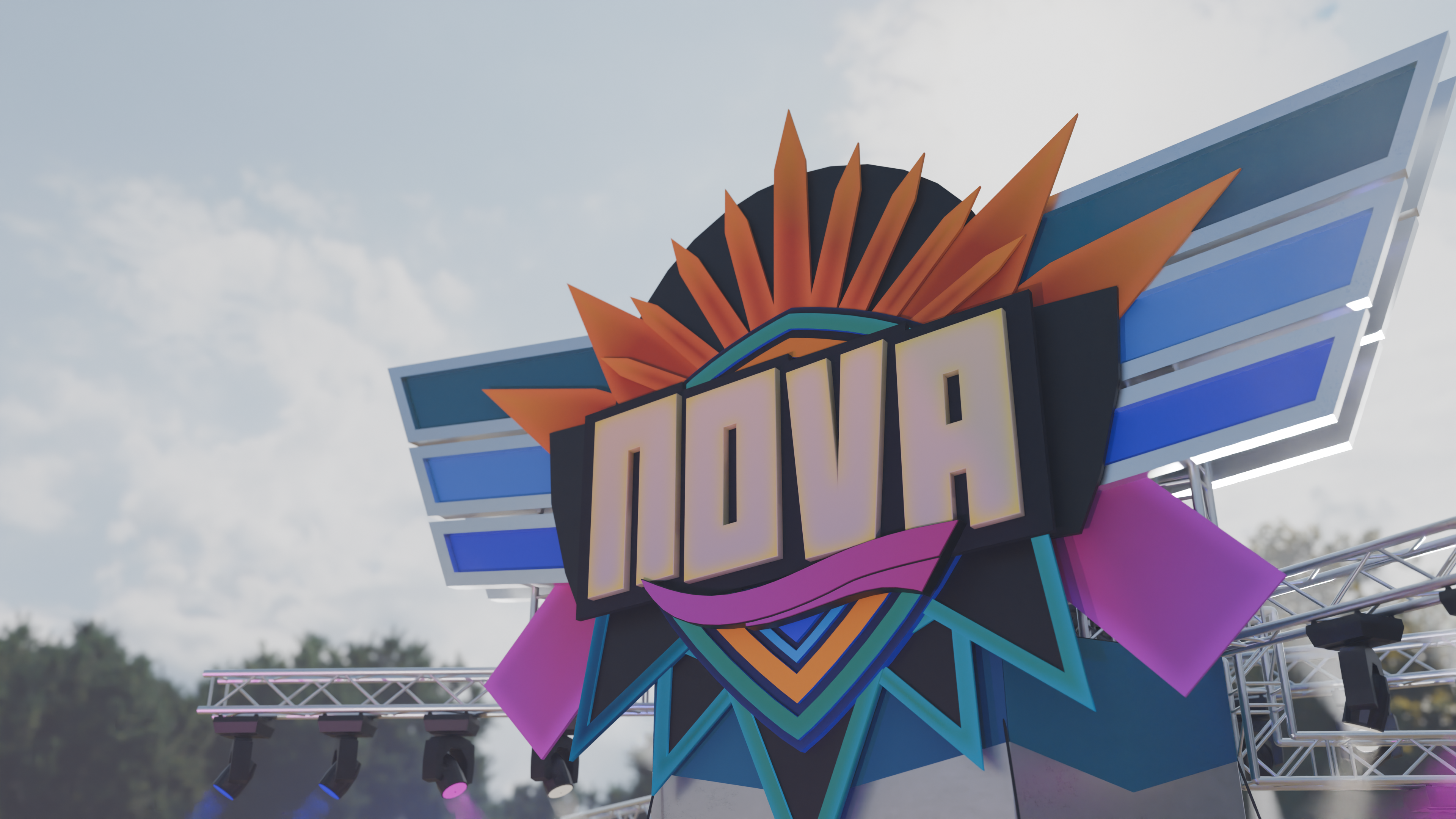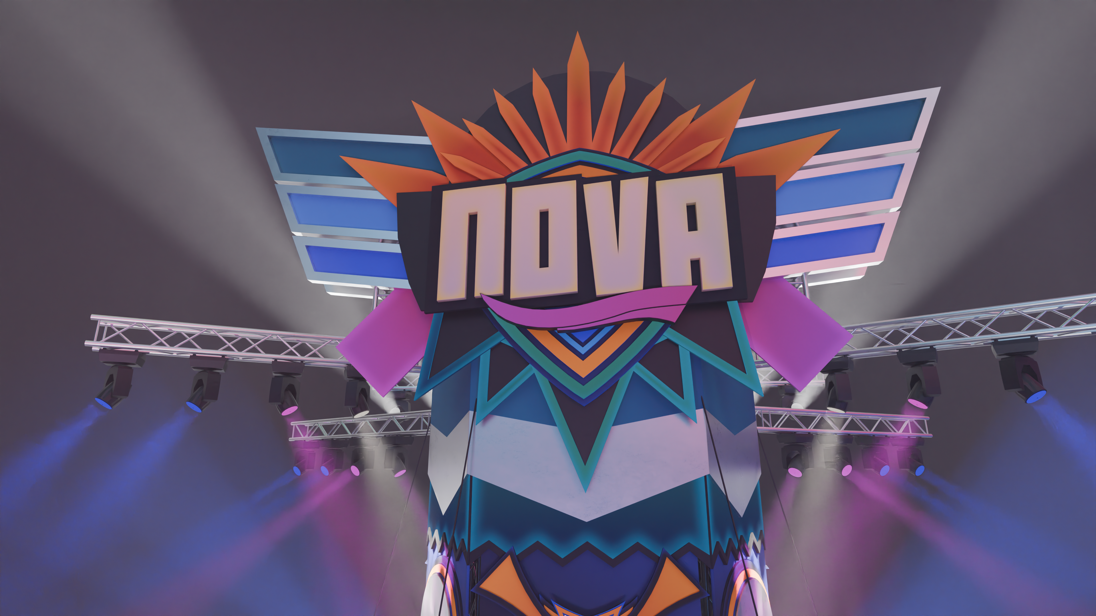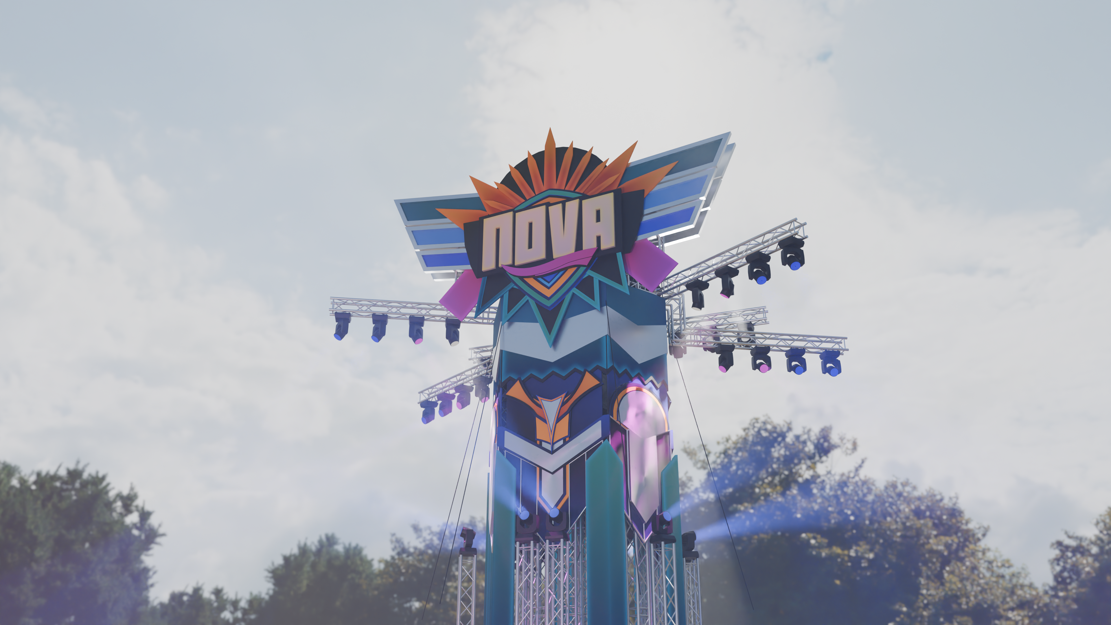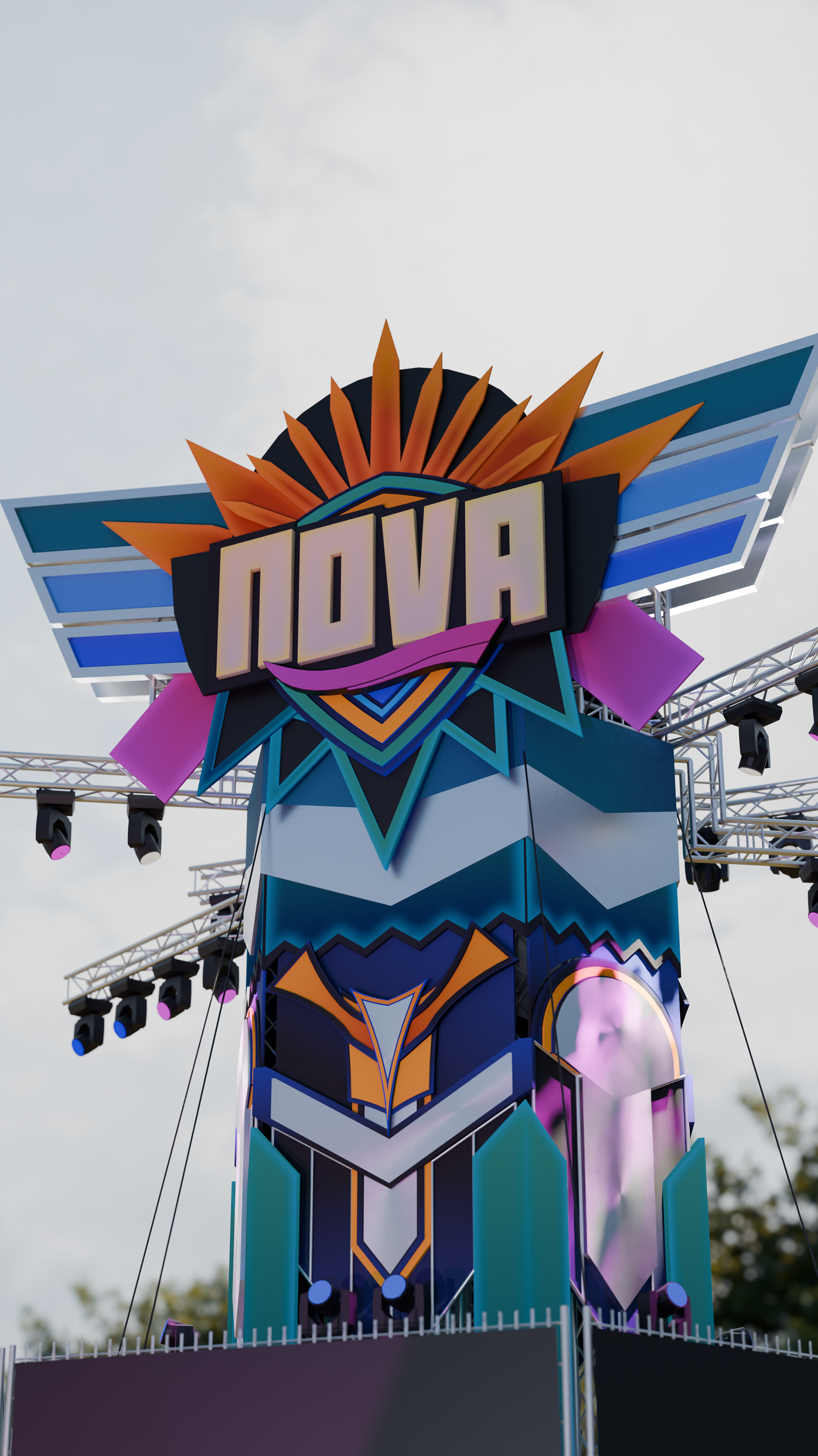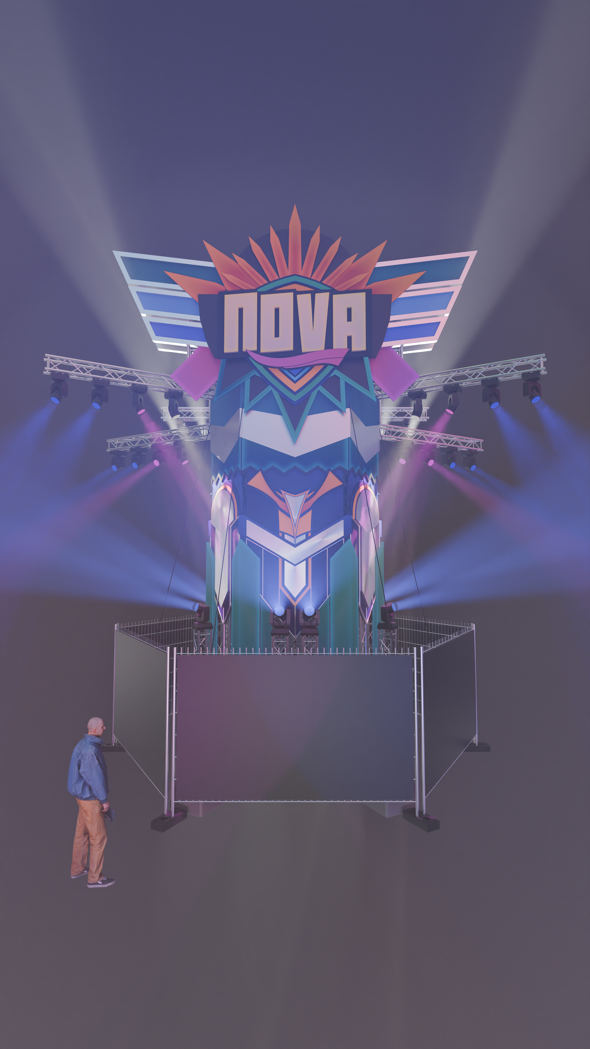 Conceived as a central scenographic element, this totem naturally draws the eye, structures the space, and strengthens the visual identity of the event, whether in a festive, musical, or artistic context.